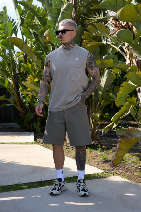 WASHED OLIVE JEANSSHORTS